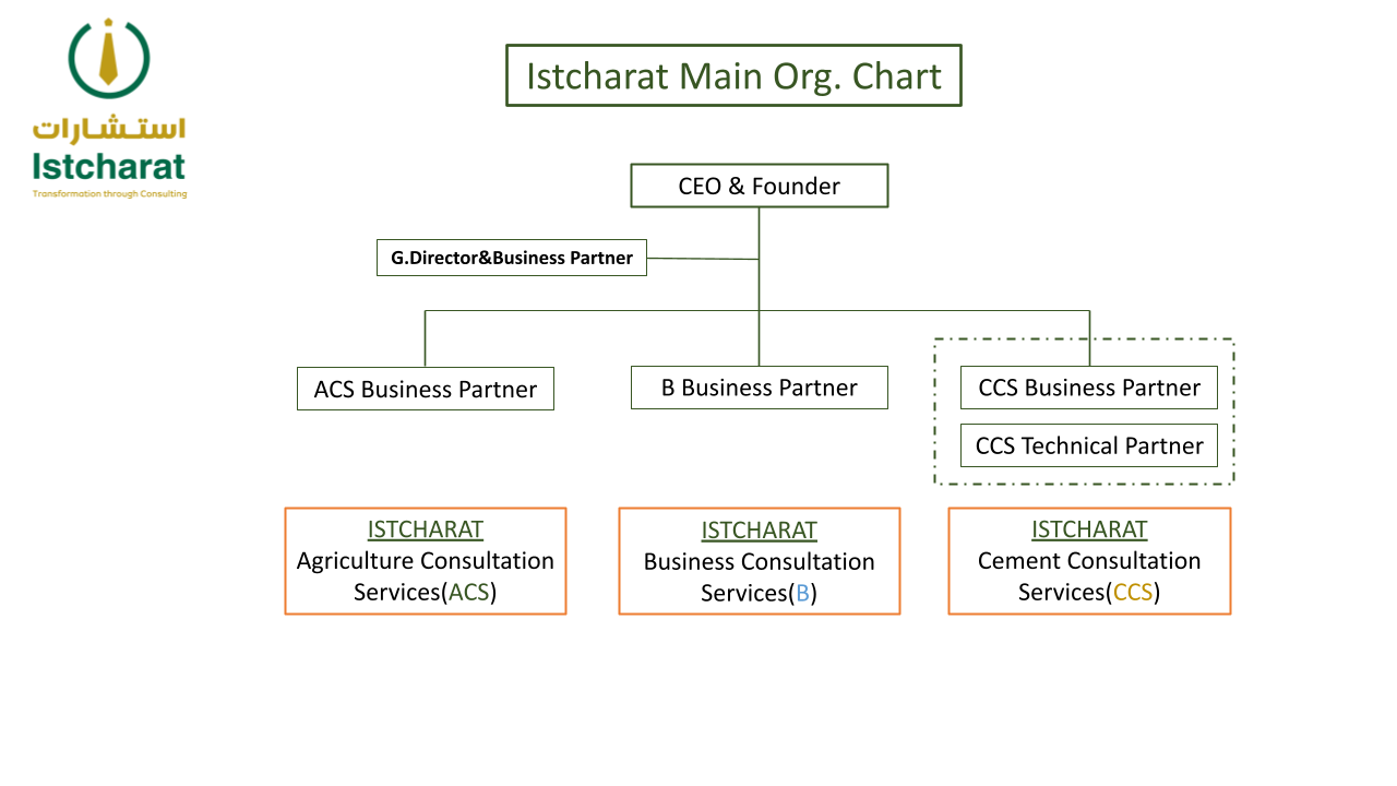 مجموعة استشارات التابعة لمجموعتنا البريطانية المحدودة والتي تم تاسيسها 2018 تضم مجموعة من الشركات والأنشطة الاستشارية على رأسها استشارات أعمال ISTCHARAT (B) المسؤولة عن الحلول الاستشارية بالمجالات المتنوعة على مستوى المجموعة؛ وتعد أول من قدم خدمة الاستشارات السريعة للأعمال؛ كما قامت المجموعة بتخصيص نشاطي الاسمنت والزراعة كنشاطين مستقلين نظرا لمتطلبات السوق .
